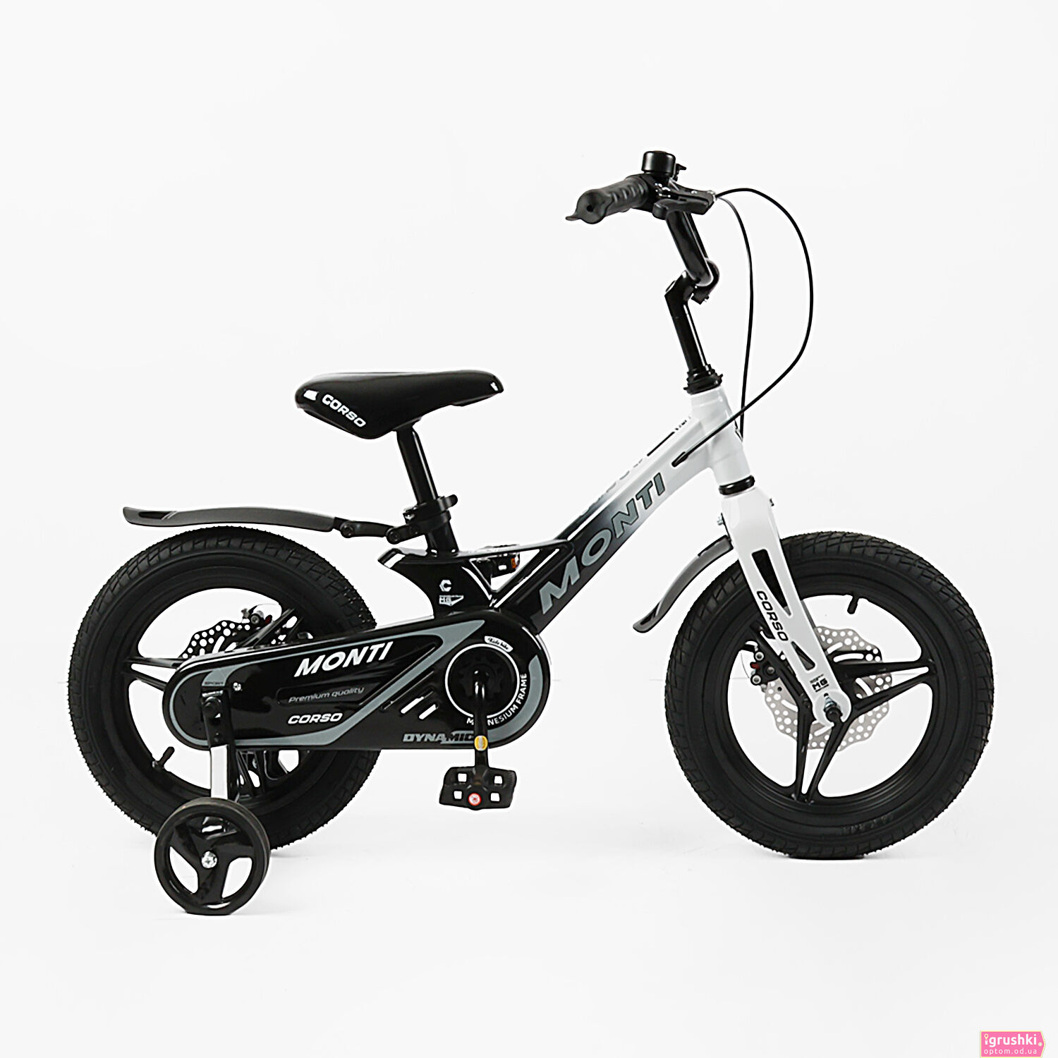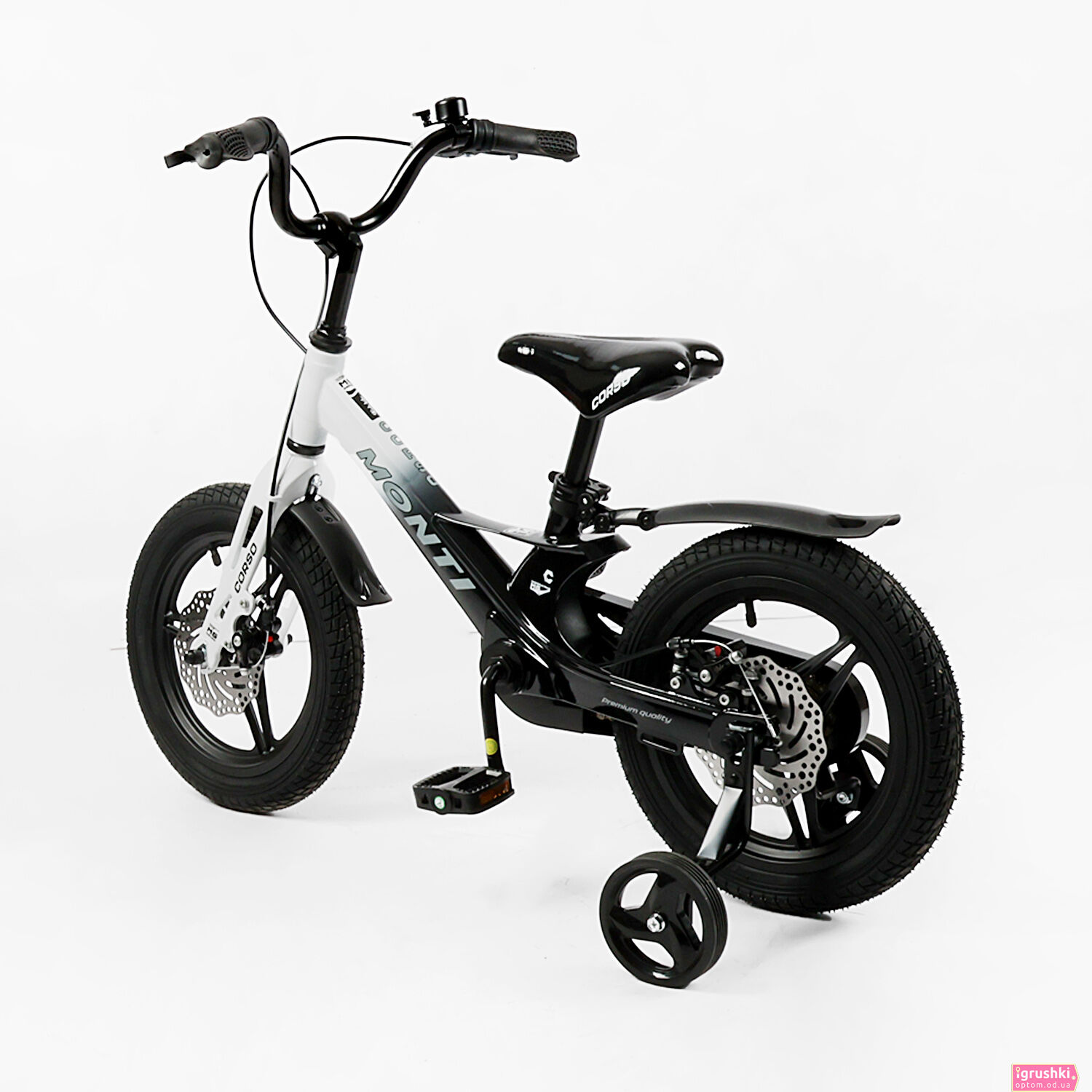 Велосипед 14" дюймів 2-х колісний Corso «Monti» MT-14231 (1) МАГНІЄВА РАМА, ЛИТІ ДИСКИ, ДИСКОВІ ГАЛЬМА, зібран на 75%